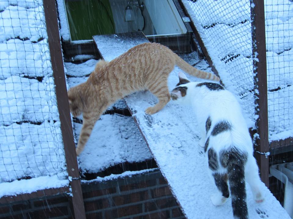 Henry schafft es inzwischen schon die geschlossene Küchentür zu öffnen. Da wird so lange hochgesprungen bis der Türgriff irgendann nachgibt. Aus allem und jedem wird ein Spielzeug gemacht und wenn man sich den Pipiködel aus dem Katzenklo klaubt um damit durch die Wohnung zu kicken. Spielen mit der Angel lieben sie beide, obwohl es für die anderen schwierig ist zum Zuge zu kommen, da Henry dann sehr ungestüm ist. Inzwischen haben sie auch begriffen, dass sie morgens beim ersten Anspringen des Radioweckers noch nicht kommen brauchen, beim zweiten Mal sind dann meist beide da und dann wird der Schnurrmotor angeschmissen.