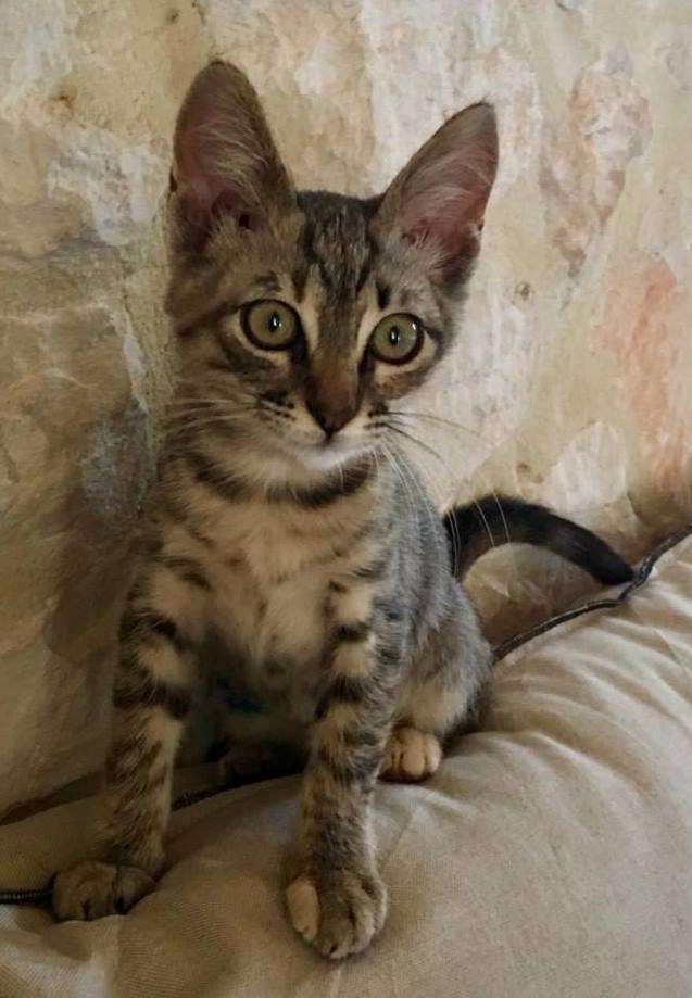 Im Sommer ist auf Zakynthos nicht nur touristische Hochsaison, auch die Kitten, die inzwischen aus dem Baby-Alter heraus sind, beleben und bereichern die Hotels und Tavernen der Insel. So auch in einem Hotelkomplex in Tragaki, wo eine kleine Katzenfamilie von den Hotelgästen verpflegt wird und im Gegenzug jede Menge Spaß bereitet. Allerdings hatte ein kleines Katzenmädchen eine lange Rißwunde unter dem Bauch. Sie wurde zwar von einer deutschen Familie hingebungsvoll medizinisch versorgt, aber die Wunde wollte einfach nicht schnell genug heilen. Da die Familie dann abreisen musste, hat sie sich vorsorglich an uns gewandt, ob wir die Genesung weiter beobachten und vorantreiben könnten. Hm … nötig war’s ja … aber wohin mit ihr … wie immer, alles voll bei den Tierschützern. Und natürlich war wieder einmal Wochenende. Gut, das auch grad ein paar Leute vom Verein selbst Urlaub in der Nähe machten, da kann man doch im Hotelzimmer einen Kaninchenkäfig mit Klo, Nestchen und Futter aufstellen. Sicherlich nicht luxuriös, aber besser als nix. Also das Wochenende überbrückt und montags ab zum Tierarzt. Der gab schnell Entwarnung. Nur eine oberflächliche Fleischwunde … ok, der hat wohl schon wesentlich Schlimmeres gesehen, für die anderen Beteiligten hatte der Riß schon gereicht. Blauspray drauf, Antibiose ins Mäulchen, entwurmen, Flöhe gab’s gar keine und dann ab zurück in den Käfig. DAS fand Lina aber gar nicht witzig. Hatte sie doch im Hotel bei der netten Familie schon mit im Bett schlafen dürfen. Na gut, dann auch bei den Vereinsleuten. Und sie war wirklich brav. Zu einem flauschen Bagel eingerollt hat sie den überwiegenden Teil der Nacht geschlafen. Aber dann … Augen auf und los … die Langeweile vertreiben, Füße jagen und Zehen beißen … Aber bei SO einem süßen Gesichtchen kann man ihr das ja nicht verübeln. Und das war auch nicht der Grund, warum sie nach einigen Tagen dann in unsere Auffangstation umzog. Dort war ein Platz freigeworden und das Hotelzimmer war ja keine Dauerlösung. In ihrer neuen Behausung war sie auch nur einen Tag alleine, dann kam Phil. Beide leisteten sich in den nächsten Wochen Gesellschaft und wurden richtig gute Kumpels. Wenn sie durch den Verschlag rauften, klang es nach einer Horde Baby-Elefanten, so berichtet Marilyn.