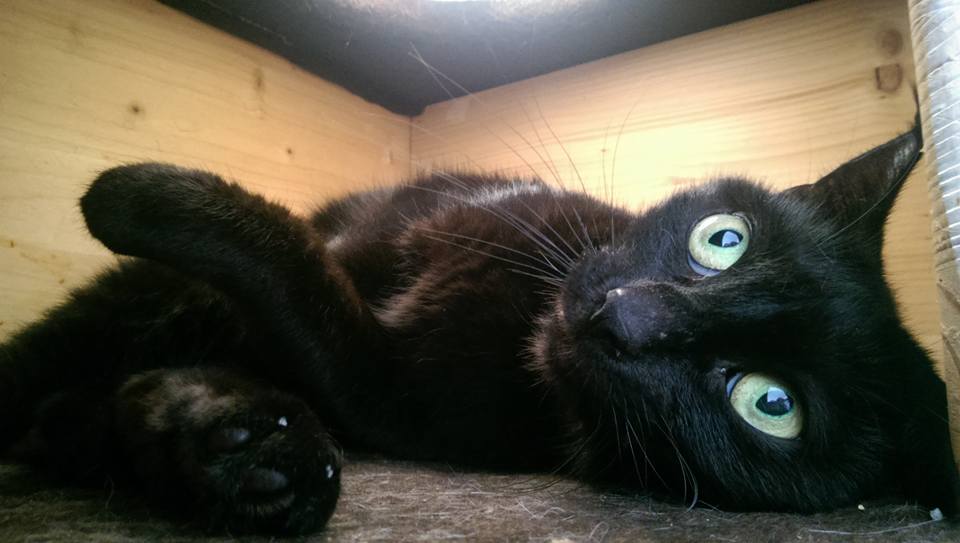 Grisi ist eine wunderschöne schwarze Katze, mit ganz langen Pinseln an den Ohren. Wenn sie über ihren Schatten springt, lässt sie sich streicheln und geht da richtig drin auf. Man braucht definitiv Geduld und darf sie nicht in die Ecke drängen.