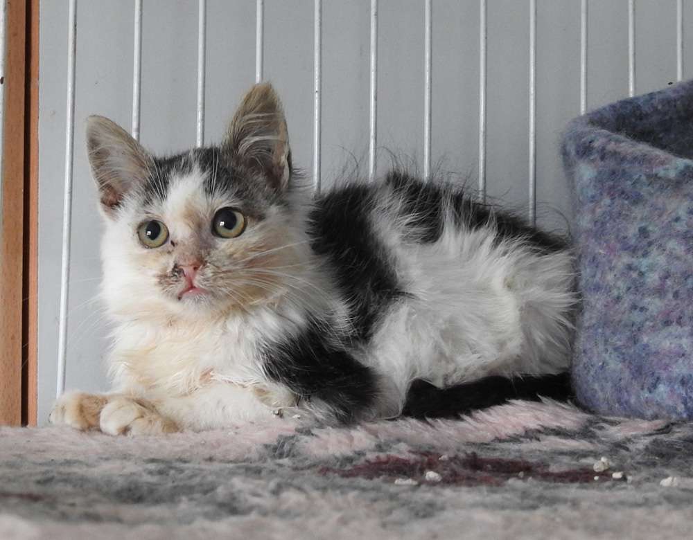 Die kleine Jessie hatte großes Glück. Geboren in einer Katzenkolonie fiel sie eines Tages einer Freundin von Marilyn ins Auge. Sie war sehr krank und hätte ohne menschliche Hilfe sicher nicht überlebt. Zunächst behandelte Marilyns Freundin Jessie vor Ort, aber das Leben ‚draußen‘ ist für eine kranke, kleine Katze einfach zu gefährlich. So landete das Kätzchen bei Marilyn, die sie liebevoll gesund pflegte. Nun ist Jessie gesund und munter, altersgemäß verspielt und bereit für ein sicheres Leben, vielleicht bei Ihnen?