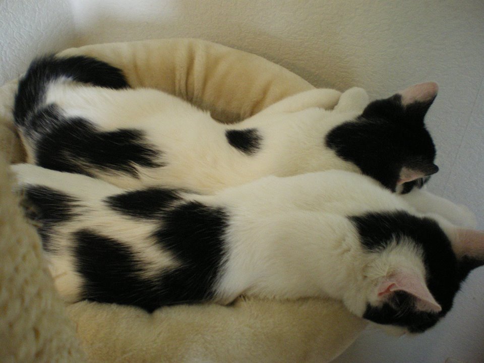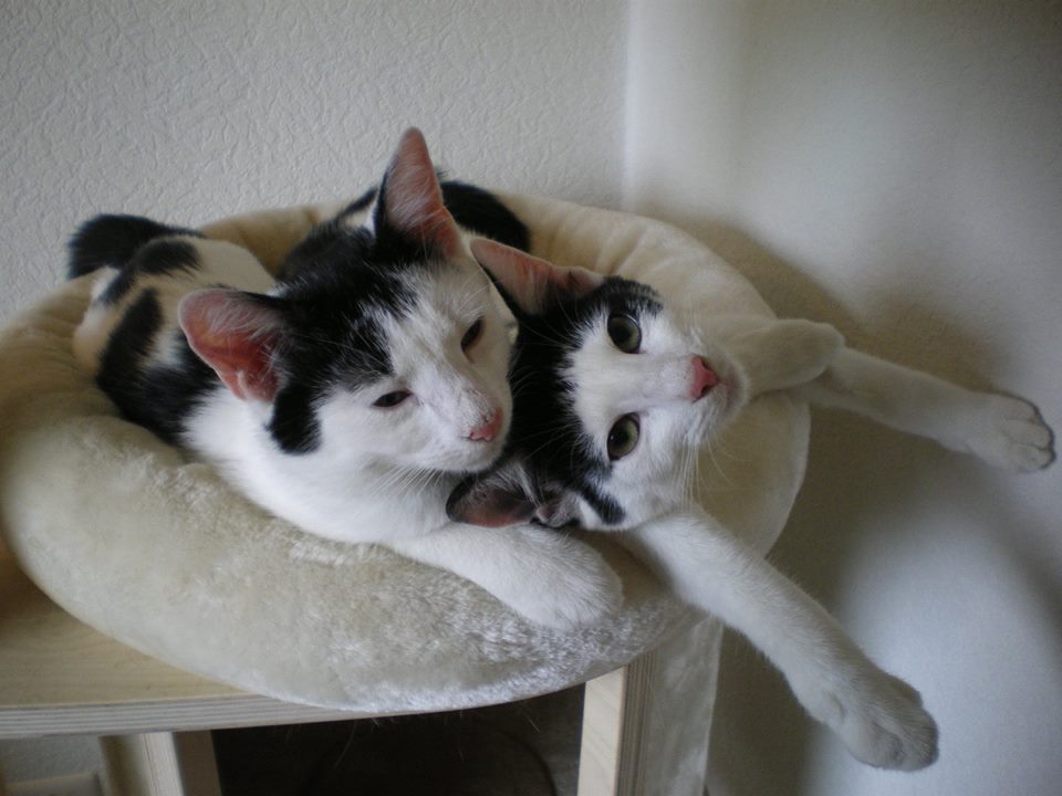Beide Jungs zeigen sich hier sehr sozial im Umgang mit den übrigen Katzen. Manchmal sind sie schon mal ein bisschen frech gegenüber den Größeren, haben aber ein gut geschultes Gespür dafür, wie weit sie gehen können, ohne eins auf die Nase zu bekommen. Grundsätzlich gehen sie aber sehr offen, freundlich und zuvorkommend mit allen anderen um. Lassen in Ruhe, wo in Ruhe gelassen werden soll. Spielen, wo Spielen gefragt ist. Kuscheln mit denen, die kuscheln möchten.