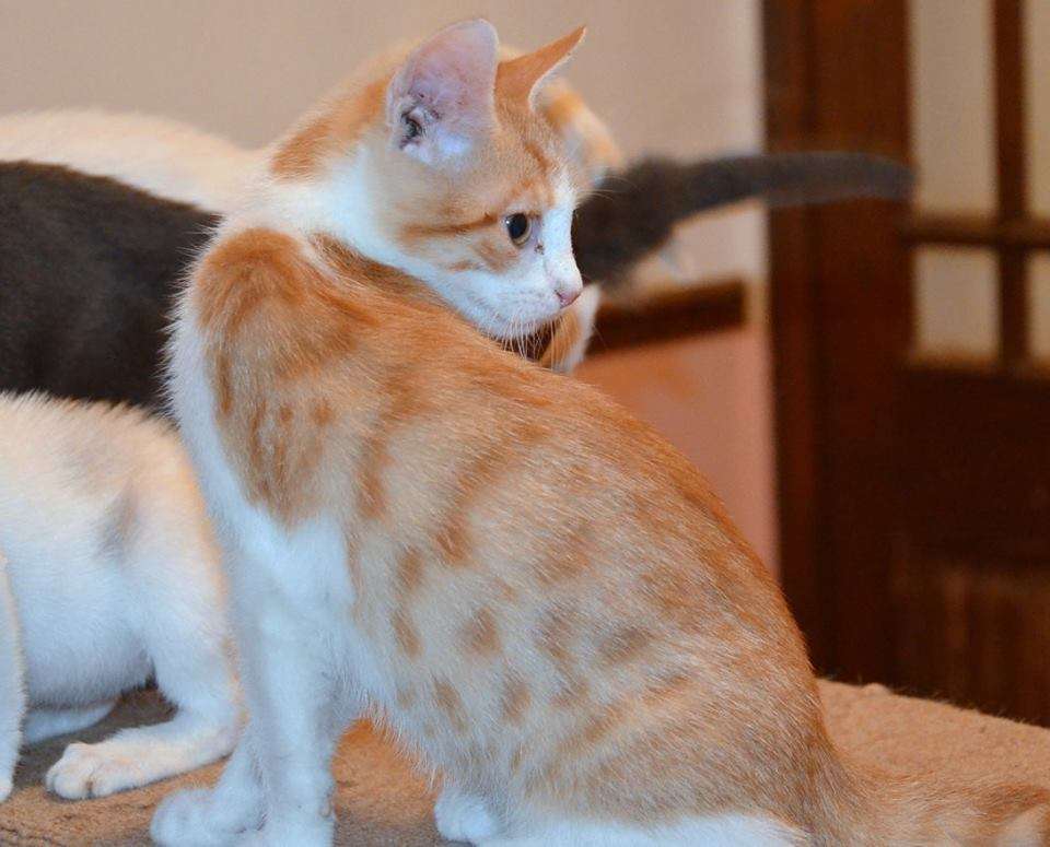 Zum Glück kam er bei Marilyn unter. So konnte sich der einst schüchterne kleine Bursche zu eine aufgeweckten, neugierigen und verspielten Kitten entwickeln.