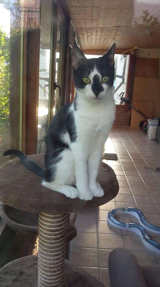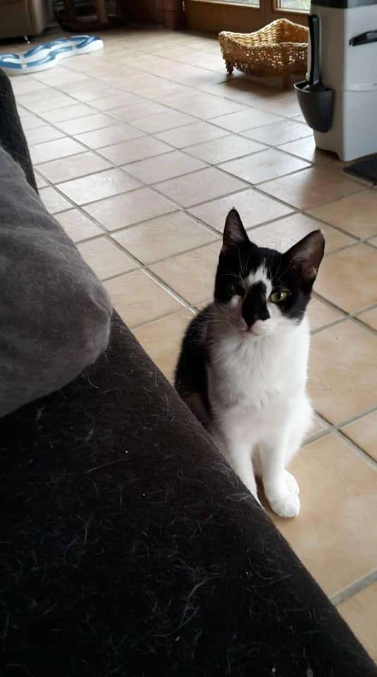 Pipsqueak wurde im Alter von 6 Monaten gefunden. Er lebte neben der Ferienwohnung eines englischen Paares, das beobachtet hat, dass Pips von einem großen Kater attackiert wurde. Sie informierten Marilyn, die Pips einfing und tatsächlich, er hatte eine Wunde, die genäht werden musste.