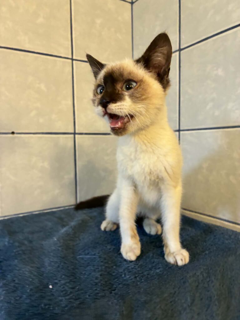 Im Januar 2026 wurde Pye geboren – ein wunderschöner Siam-Mix mit neugierigen Augen und einem ganz besonderen Charme. Sein Start ins Leben war alles andere als leicht: Mit nur etwa sechs Wochen wurde er ganz allein auf einer vielbefahrenen Hauptstraße gefunden. Woher er kam und was er in dieser kurzen Zeit schon erlebt hat, bleibt ein Geheimnis. Doch eines ist sicher – er hatte großes Glück, rechtzeitig entdeckt und in Sicherheit gebracht zu werden.