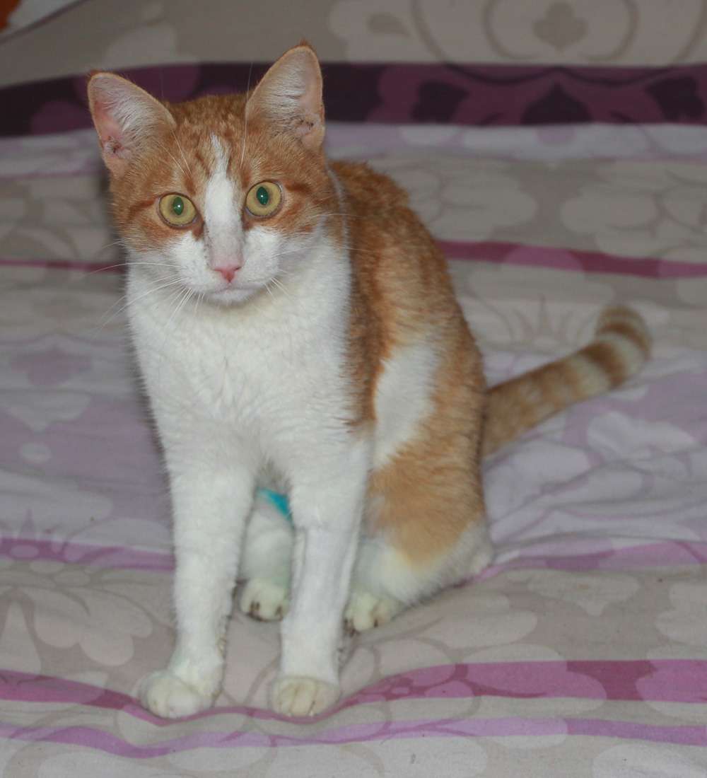 Die kleine rot-weiße Rita ist eine Kämpferin. Als eine der wenigen Katzen und Hunde überlebte sie einen schlimmen Vergiftungsanschlag, bei welchem sogar ein paar Bauernhoftiere ihr Leben lassen mussten. Wir wollen gar nicht darüber nachdenken, wie so ein Mensch sein muss, der zu so etwas fähig ist! Beim Tierarzt konnte sie sich allmählich erholen und kämpfte sich ins Leben zurück. Ihr Schwanz war von fiesen Maden befallen und musste erstmal gesäubert und behandelt werden. Danach stand ihrer Kastration nichts mehr im Wege und nun sucht die im September 2015 geborene Dame ein liebevolles Zuhause.