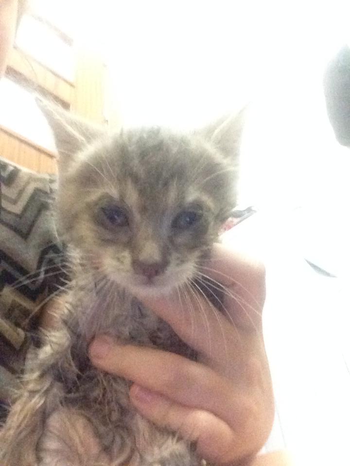 Als Roland als kleines Kitten auf der Straße gefunden wurde, hatte er schlimm entzündete Äugelchen und der ganze Kopf war bedeckt mit Eiter und Nasenschleim … Gut, dass sich Tierschützer von so einem Anblick nicht abschrecken lassen. In diesem Fall war es sogar die Tochter unseres griechischen Tierarztes selbst, die beherzt zugriff und das Häufchen von der Straße klaubte.