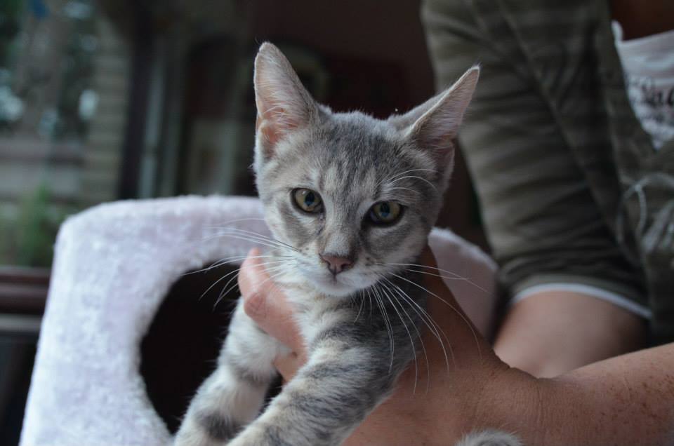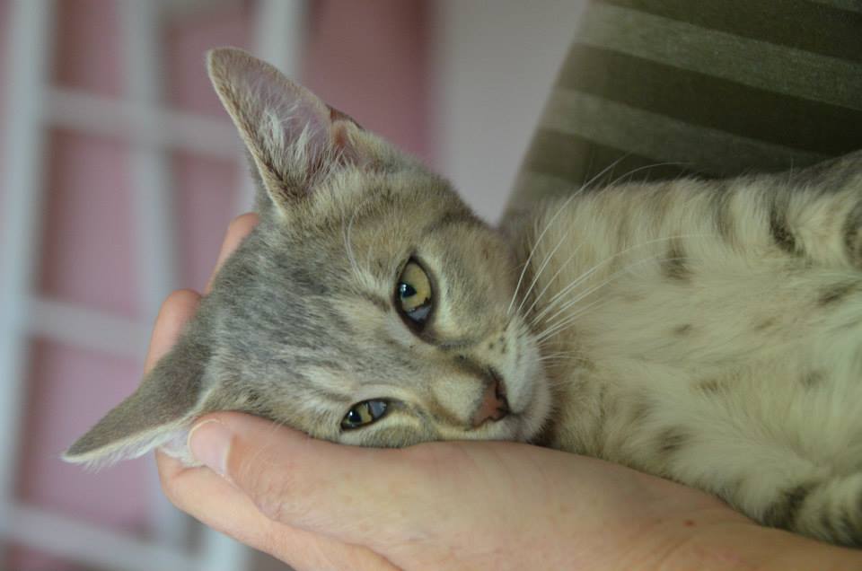 Roland hat eine sehr außergewöhnliche Fellfarbe, seine Tigerzeichnung ist pastellfarben: hellgrau mit beige und sein Bäuchlein hat graue Punkte auf beigem Untergrund. Kurz gesagt, er ist wunderschön.