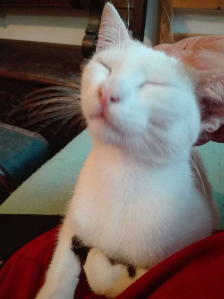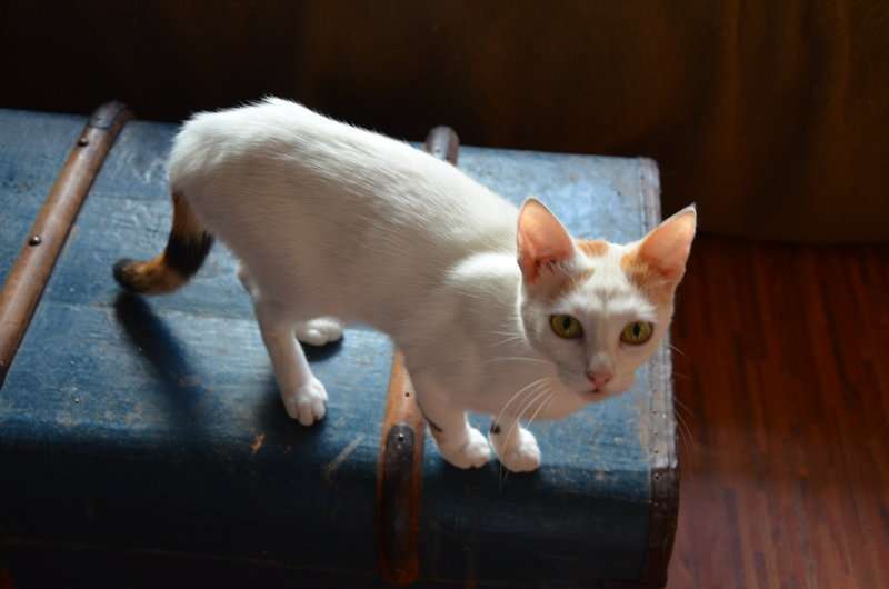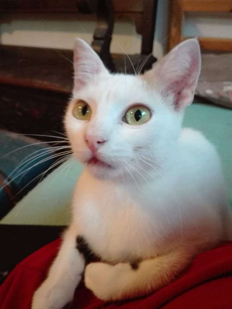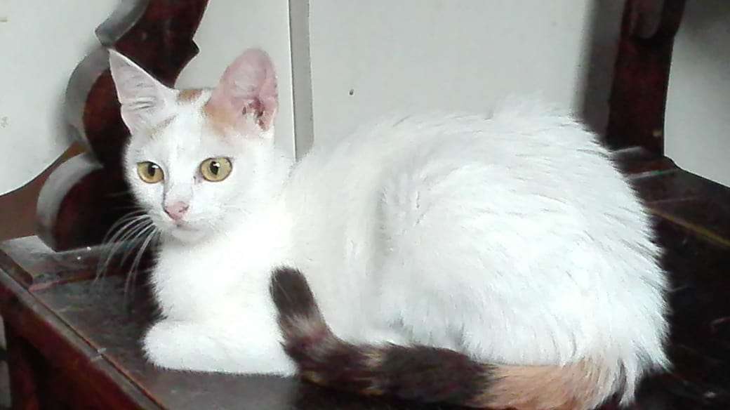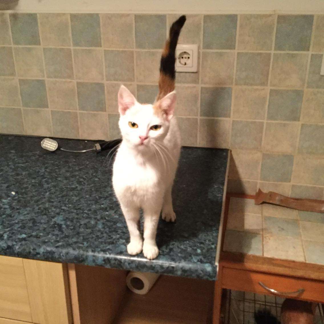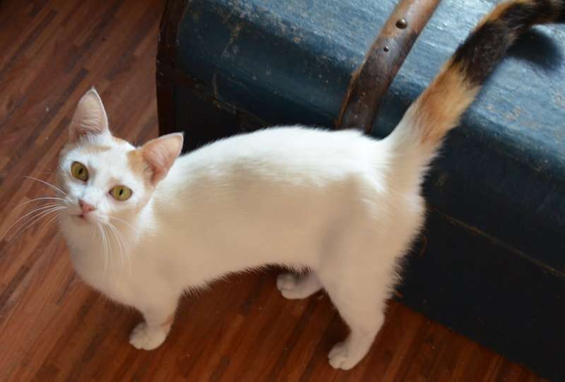 Obwohl knapp ein Jahr alt hat sie in etwa die Größe eines 16 Wochen alten Kittens – was ihrem Selbstbewusstsein keinen Abbruch tut. Sie weiß genau, was sie will. Und wie sie es bekommen kann. 😉 Und die Natur hat ihr ein wunderschönes Jäckchen gegeben, denn obwohl auf den ersten Blick überwiegend weiß, hat sie ihre bunte Schwanzfarbe auch an der Rückseite der Vorderbeine und somit eine ganz besondere und ganz bezaubernde Färbung.