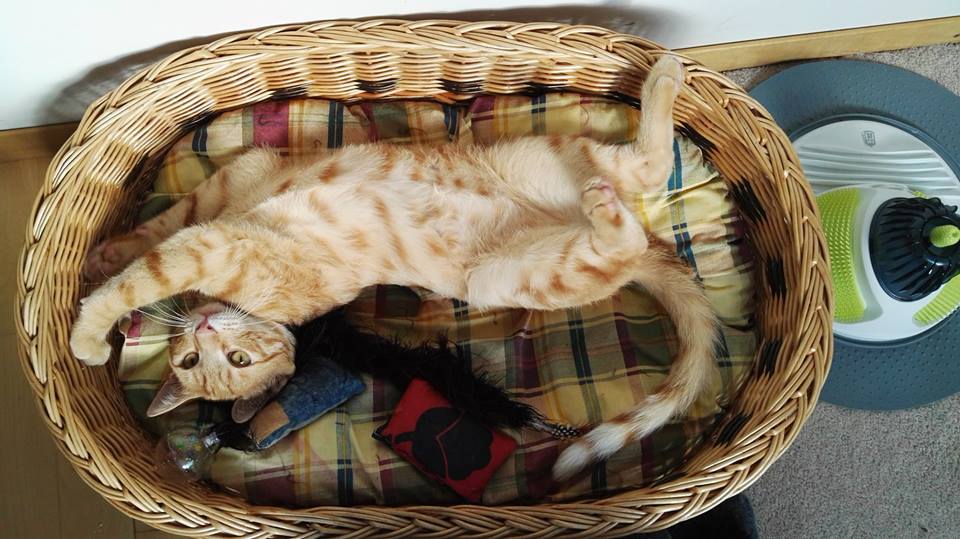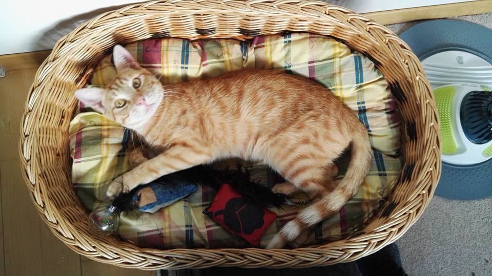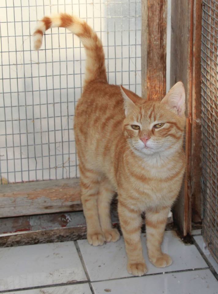 Auch unser süßer Rufus mit dem kessen Blick verdankt sein Leben aufmerksamen Touristen. Er gehört zu den vielen kleinen Kätzchen, die leider oft auf der Insel ohne Mutter aufgefunden werden. Rufus wuselte in einem Müllhaufen, auf der Suche nach Nahrung. Als er merkte, das man ihn einfangen wollte, versuchte er, sich im Müll zu verkriechen. Als er aus dem Müll gehoben wurde, war er am ganzen Körper am zittern. Auf der Suche nach Hilfe für ihren Findling wurden die Touristen an Marilyn verwiesen und brachten ihn sofort dorthin. Marilyn nahm sich des verängstigten und ausgehungerten Kittens an und päppelte ihn liebevoll.